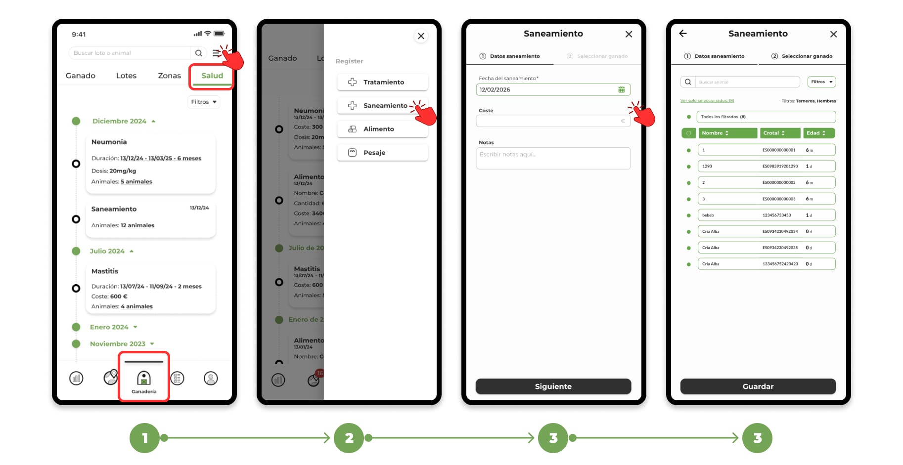 1. Accede a la sección "Ganadería" y pulsa en "Salud".