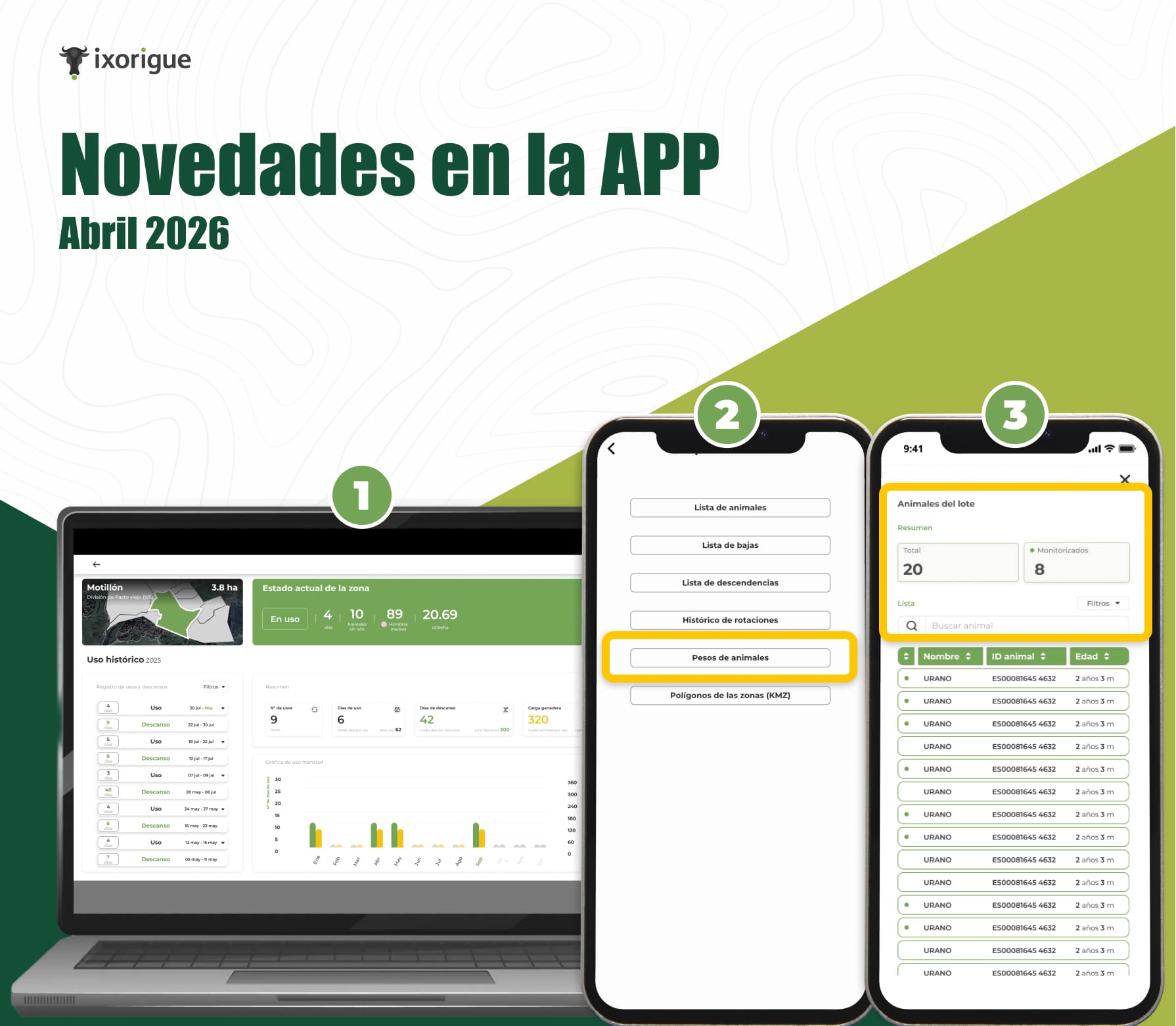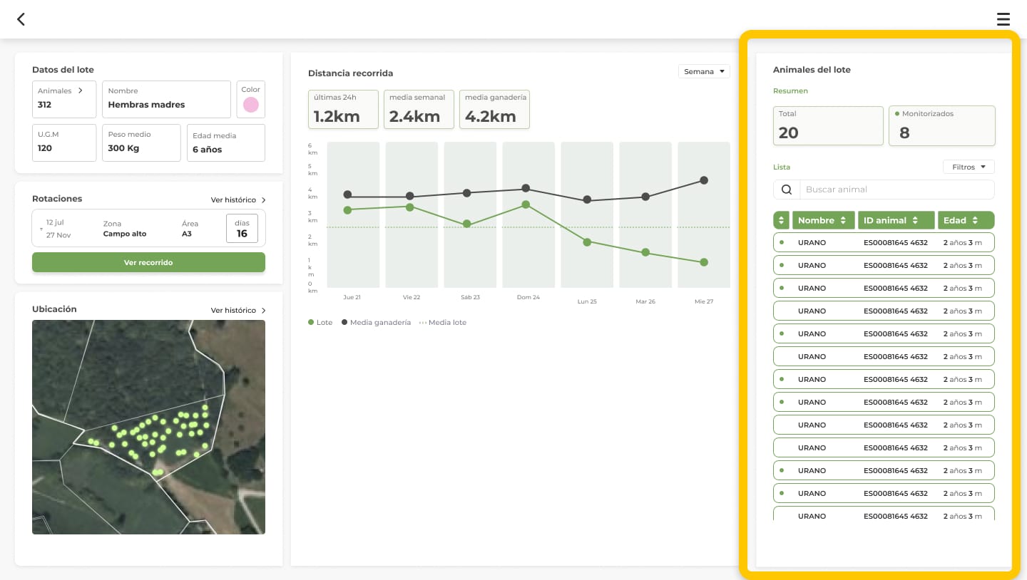 Ahora la organización y visualización de la ficha de lotes es más cómoda y puedes ver que animales están monitorizados, cuales no, y filtrar la lista de animales del lote.